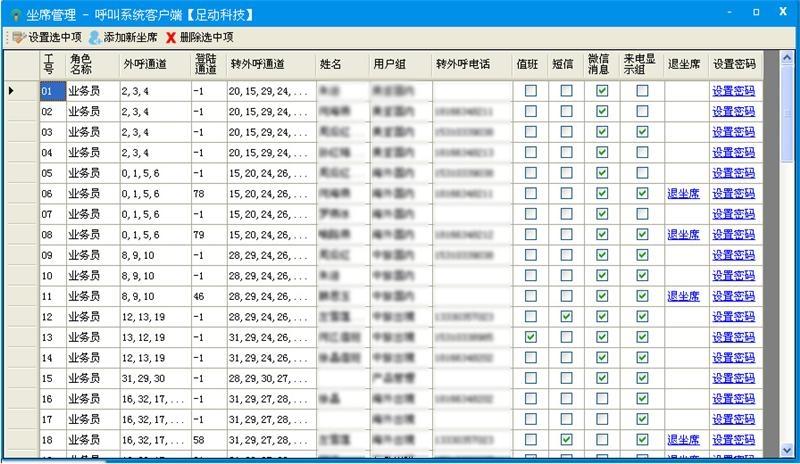 設置坐席基本信息、外呼通道(電話)以及轉外乎通道(電話)等。